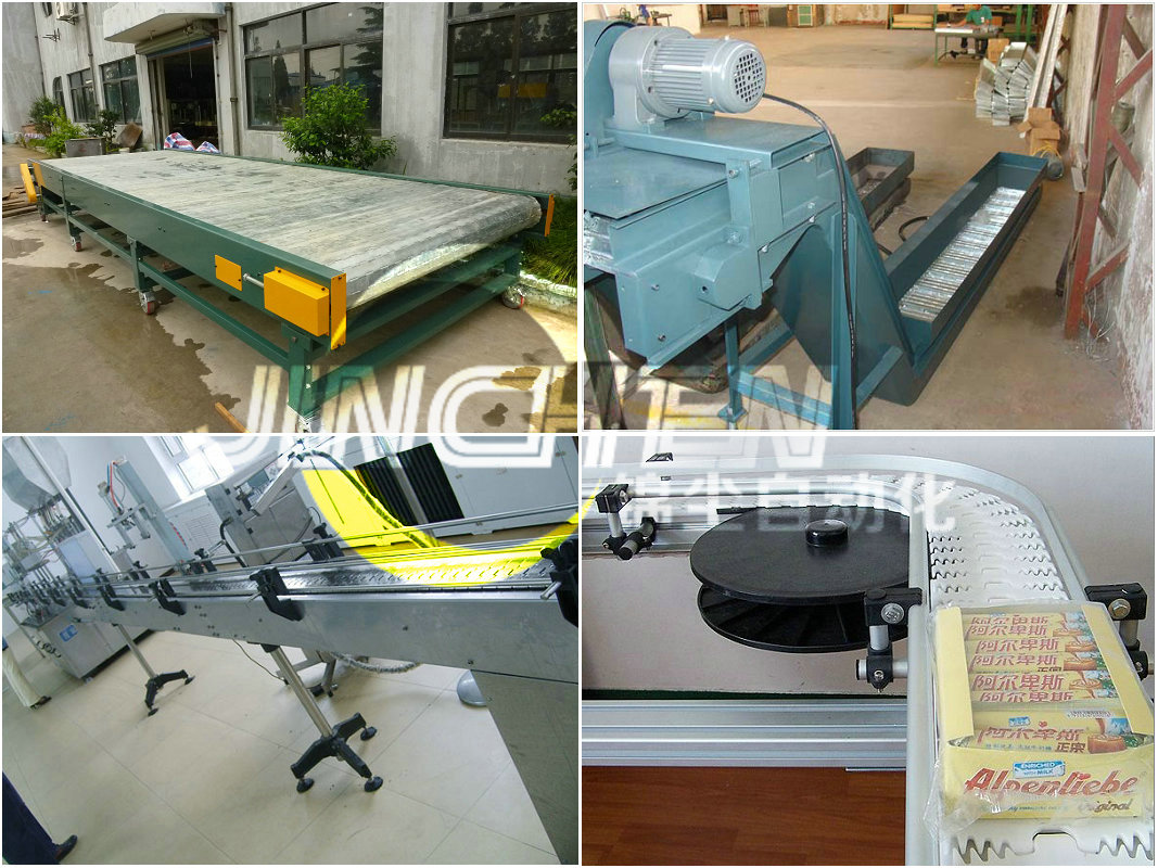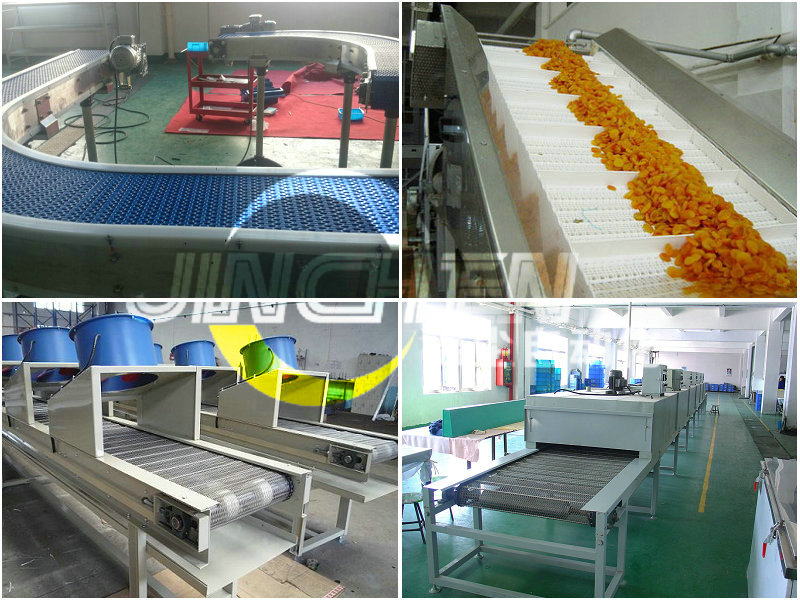 使用金屬或模塊網(wǎng)帶,采用鏈輪驅(qū)動(dòng),不易蛇行、跑偏,根據(jù)產(chǎn)品特性選擇網(wǎng)帶材質(zhì),可增加加熱.清洗.殺菌等配套。