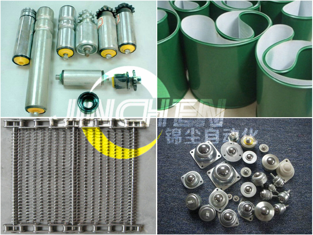 輸送機(jī)配件包括皮帶、滾筒、網(wǎng)帶和萬向球等。